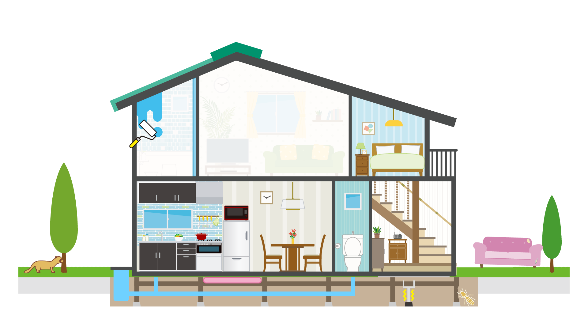 シロアリ駆除・予防対策、排水管クリーニング